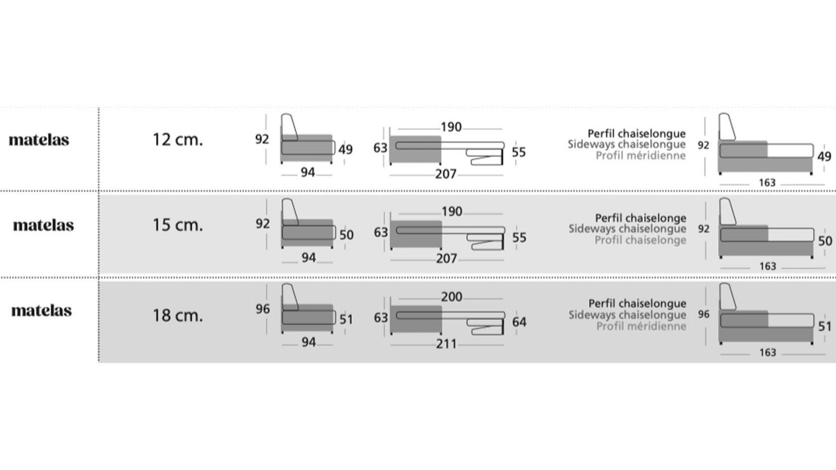 Existe en 90x190/200, 120x190/200, 140x190/200, 160x190/200, 2x90x190200