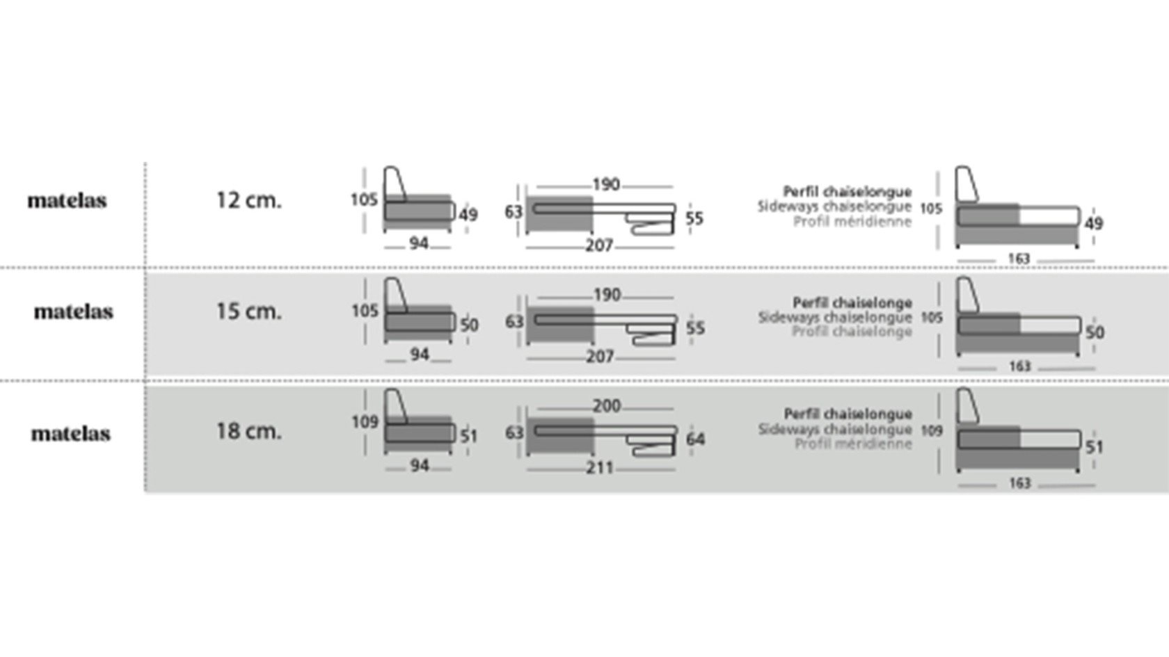 - Profondeur ouverte: 207 cm (211 pour les versions 200 cm)