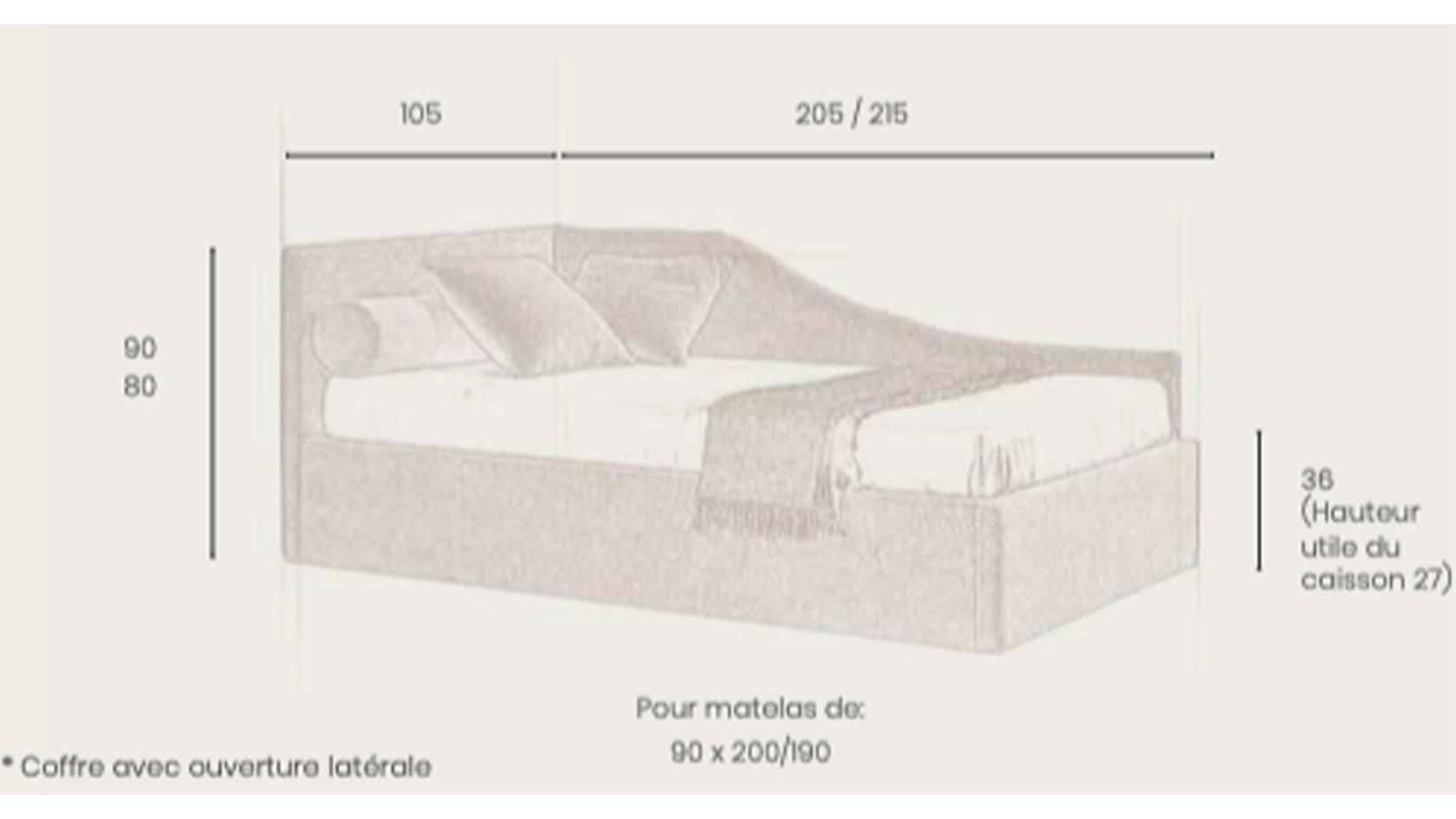 - Lit coffre méridienne: Existe en 90x190 ou 90x200 cm
