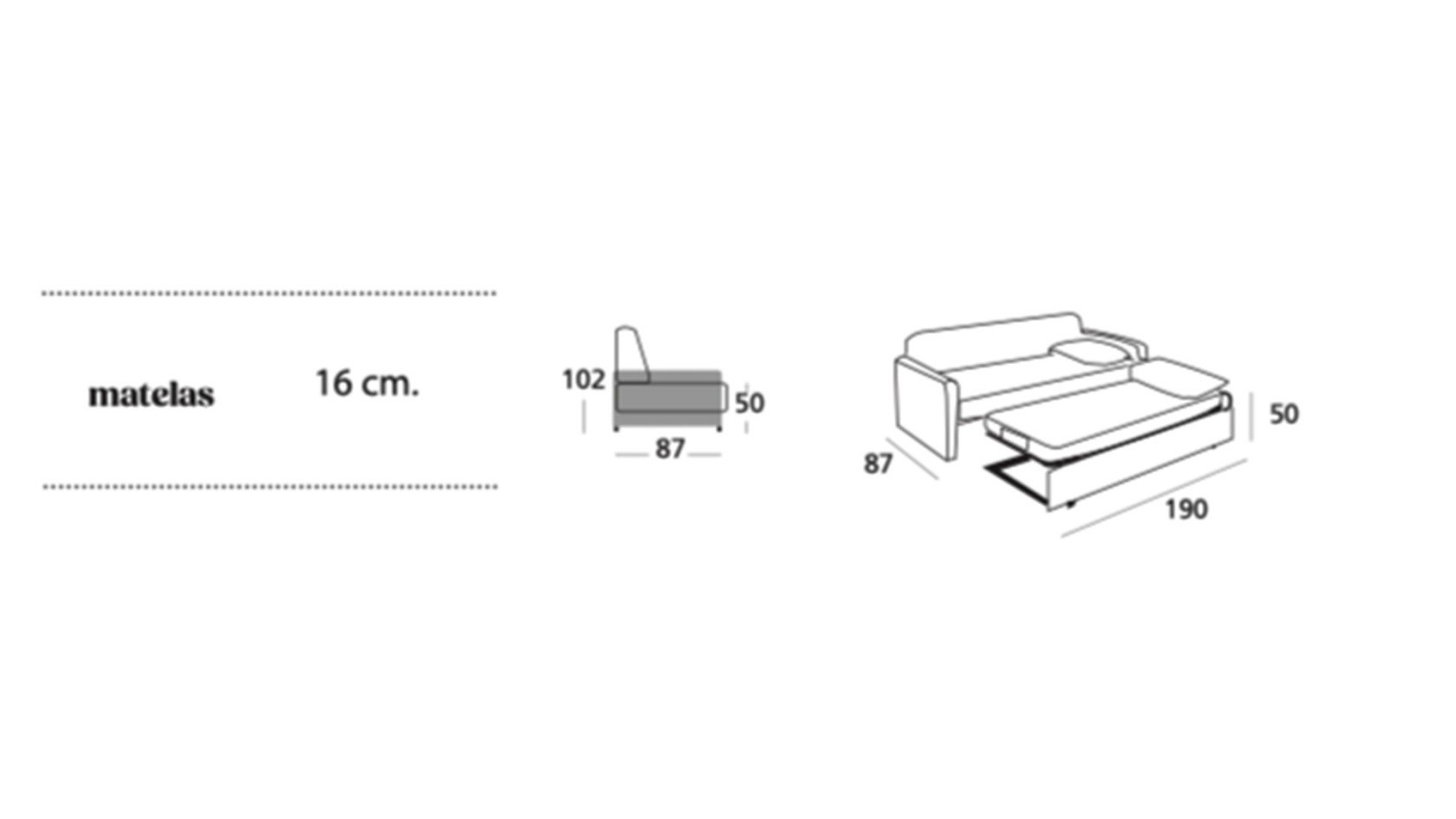 Sièges avec système comfortplus qui comprend une série de canapés-lits avec un siège spécial composé de polyuréthane de différentes densités, avec un trapèze inversé de 30 kg de mousse SuperSoft et de fibre creuse de silicone pour donner un siège doux mais ferme et avec des finitions arrondies, sans coins, avec un confort supplémentaire qui ne dirait pas qu'il s'agit d'un canapé-lit.