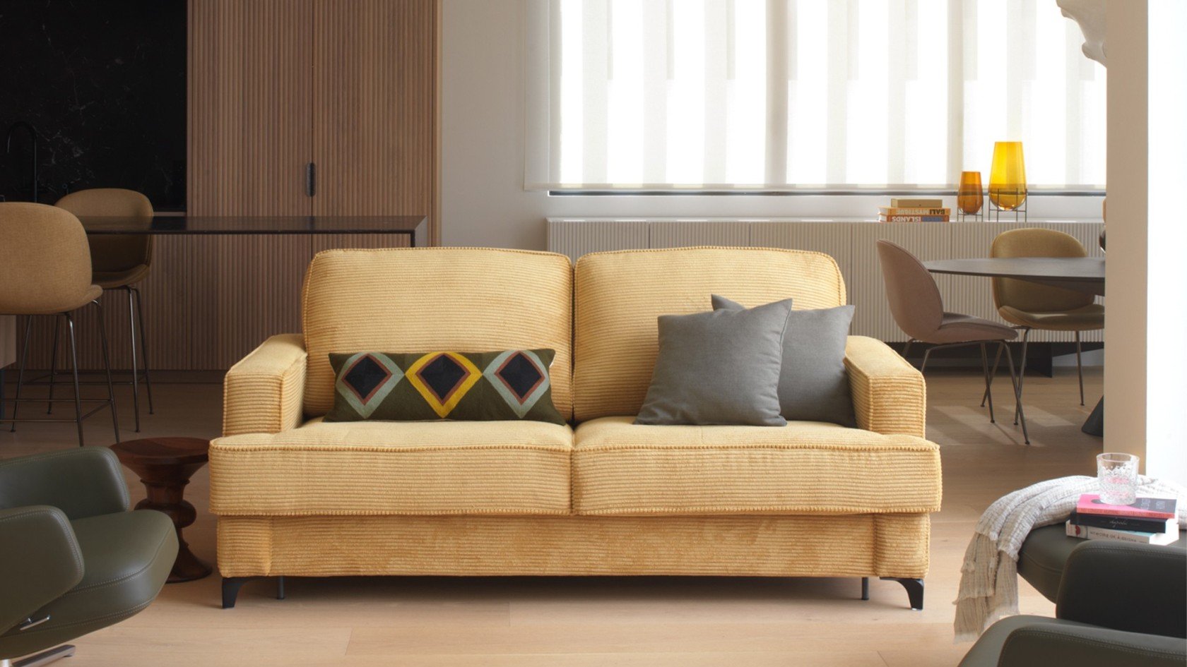Sièges avec système comfortplus qui comprend une série de canapés-lits avec un siège spécial composé de polyuréthane de différentes densités, avec un trapèze inversé de 30 kg de mousse SuperSoft et de fibre creuse de silicone pour donner un siège doux mais ferme et avec des finitions arrondies, sans coins, avec un confort supplémentaire qui ne dirait pas qu'il s'agit d'un canapé-lit.