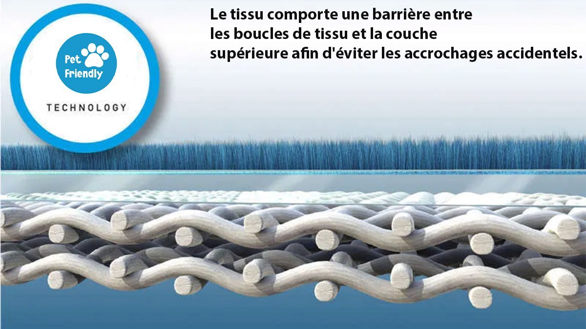 Ce n’est pas simplement un slogan publicitaire: les tissus qualifiés de "pet-friendly" répondent à des critères techniques précis pour mieux résister aux griffes et aux poils qu’un tissu standard. Grâce à un tissage fin et à l’ajout d’un matériau résistant (couche de Teflon par exemple), les poils d'animaux ne s’y incrustent pas ou beaucoup moins, permettant un nettoyage facile avec un rouleau ou un aspirateur.