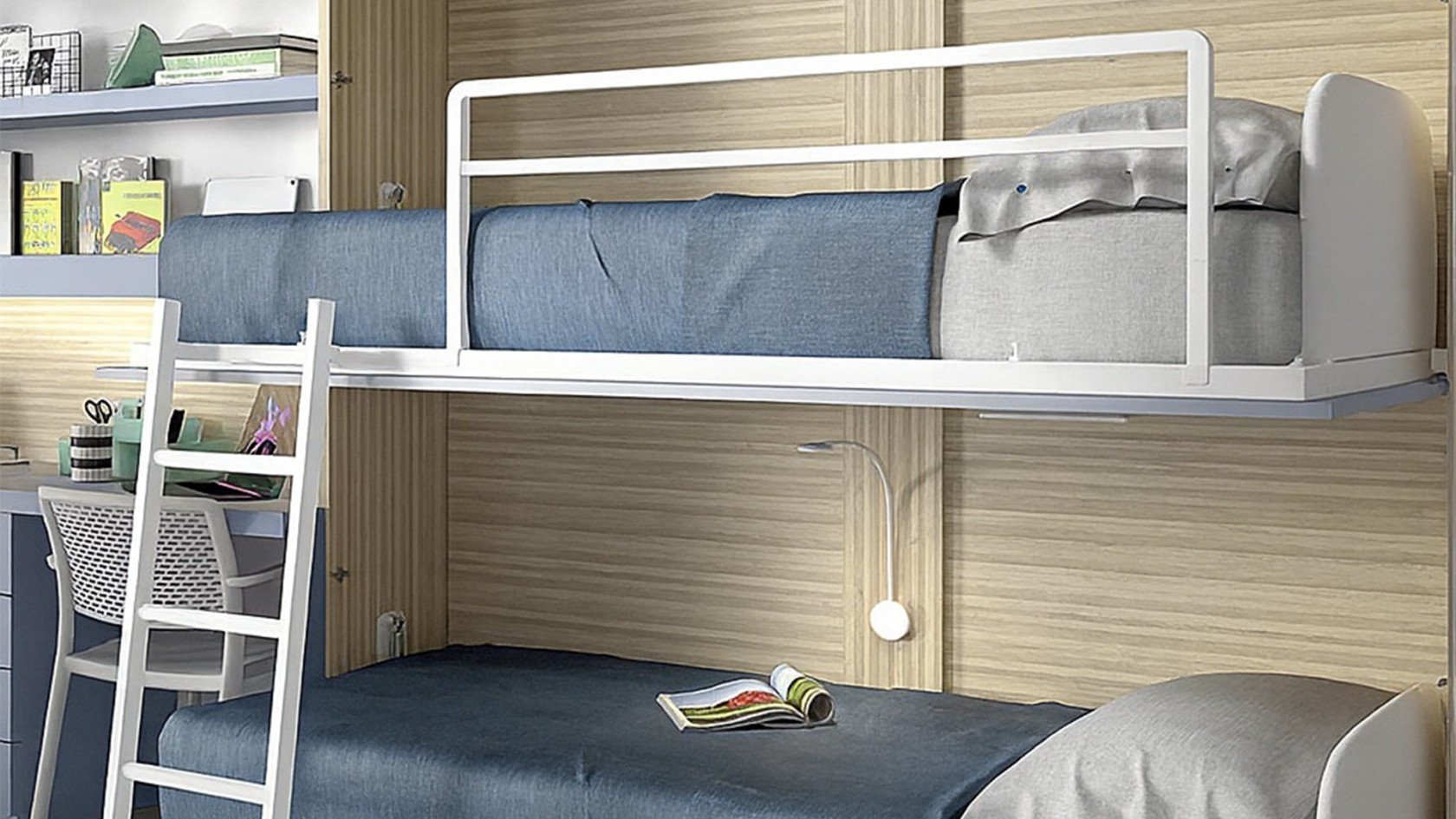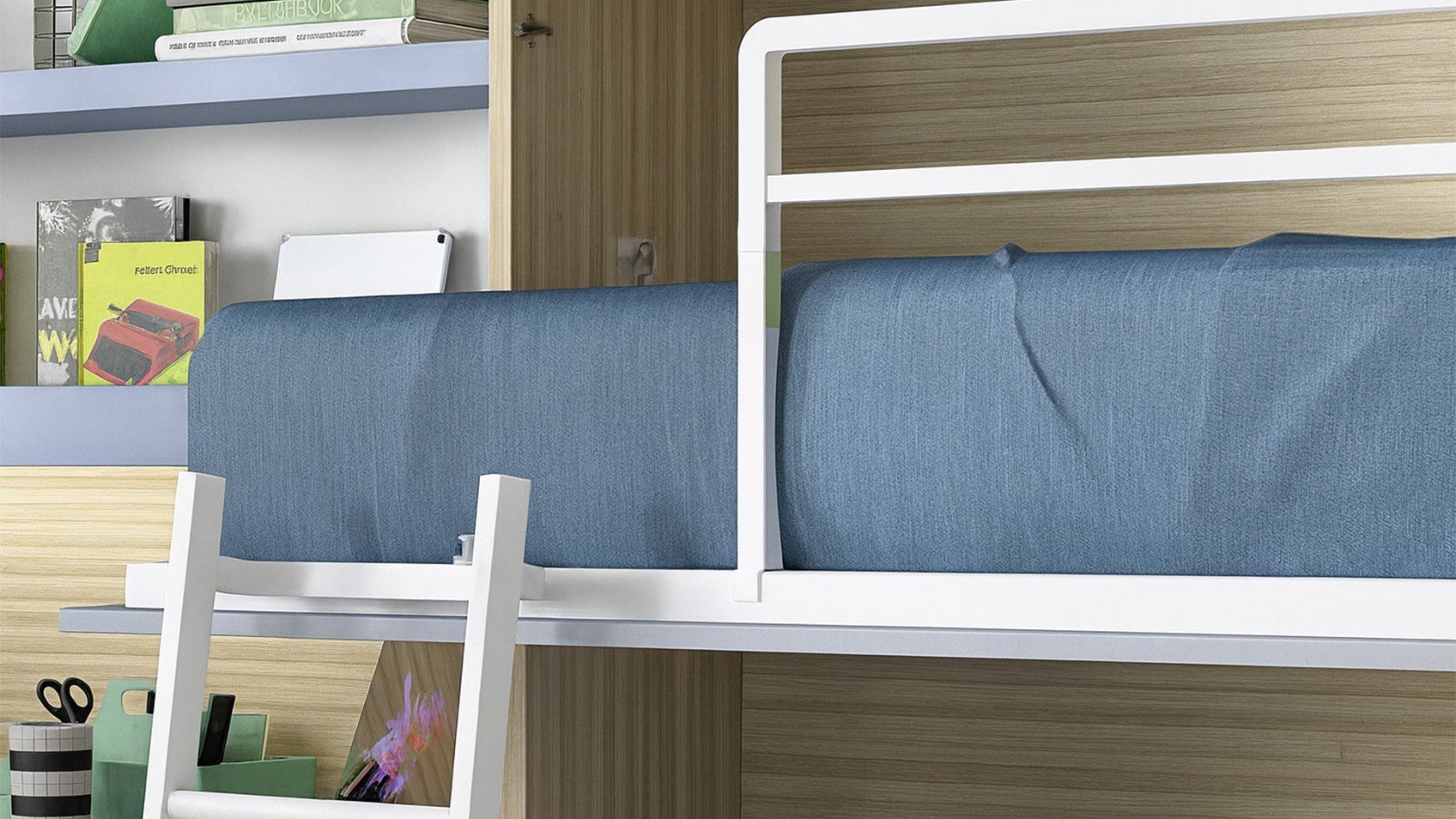 - Barrière de sécurité latérale et têtière incluses pour le lit du haut