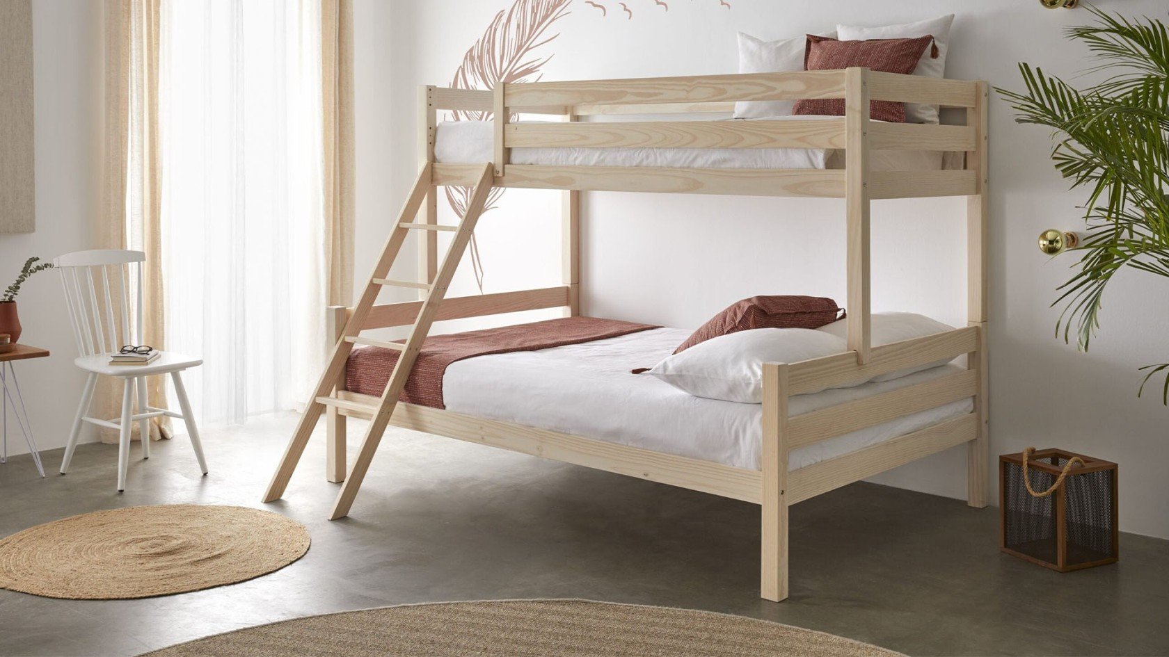 Les lits superposés sont l'une des meilleures solutions d'économie d'espace qui existent aujourd'hui, en particulier pour ce modèle qui incorpore un lit simple supérieur et un lit double inférieur. Indispensable pour optimiser l'espace au maximum, sa grande polyvalence permet de faire dormir jusqu'à 3 personnes dans un espace minimum: on ne peut pas demander plus en termes de fonctionnalité et d'économie de mètres! Spécialement conçu pour l'aménagement de petites chambres ou pièces, il permet d'avoir 2 lits superposés et, dans ce cas, jusqu'à 3 personnes peuvent y dormir. Sa grande fonctionnalité le rend non seulement amusant, mais aussi idéal pour optimiser l'espace tout en bénéficiant du meilleur confort et tout cela à un prix imbattable.