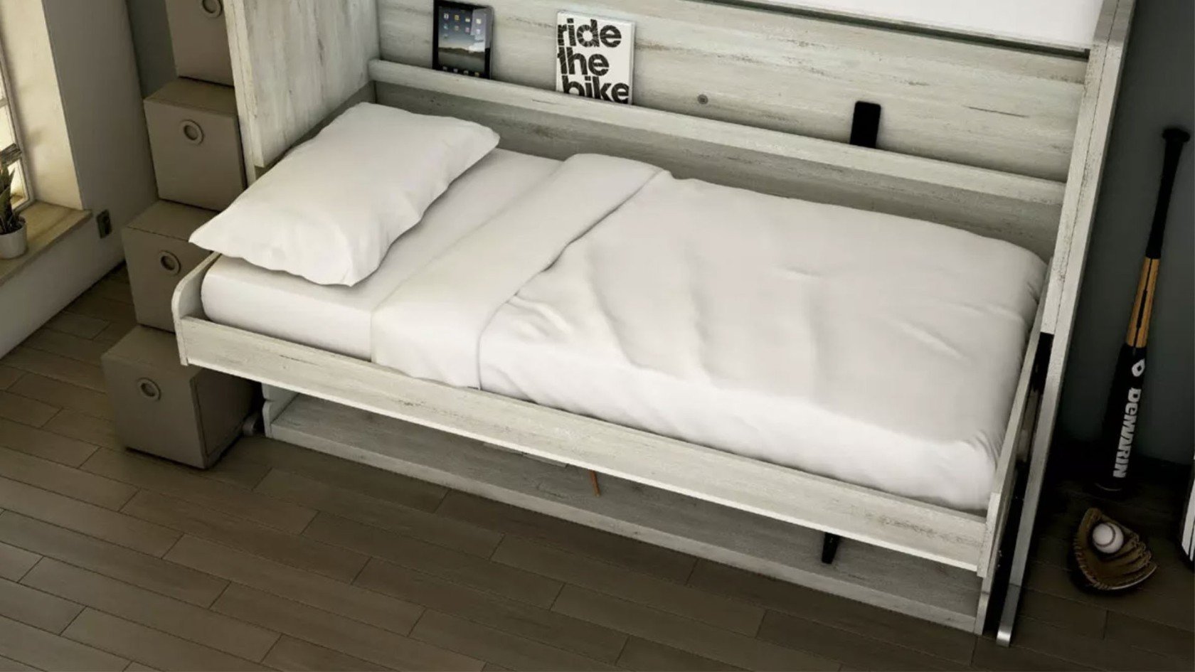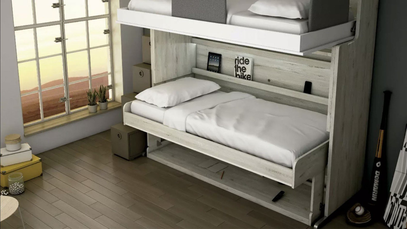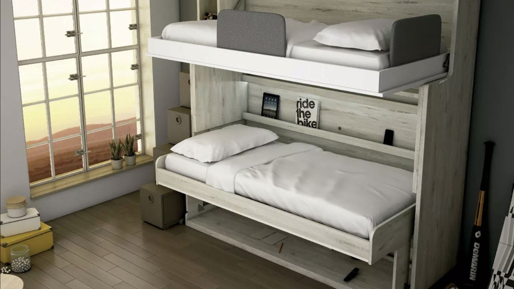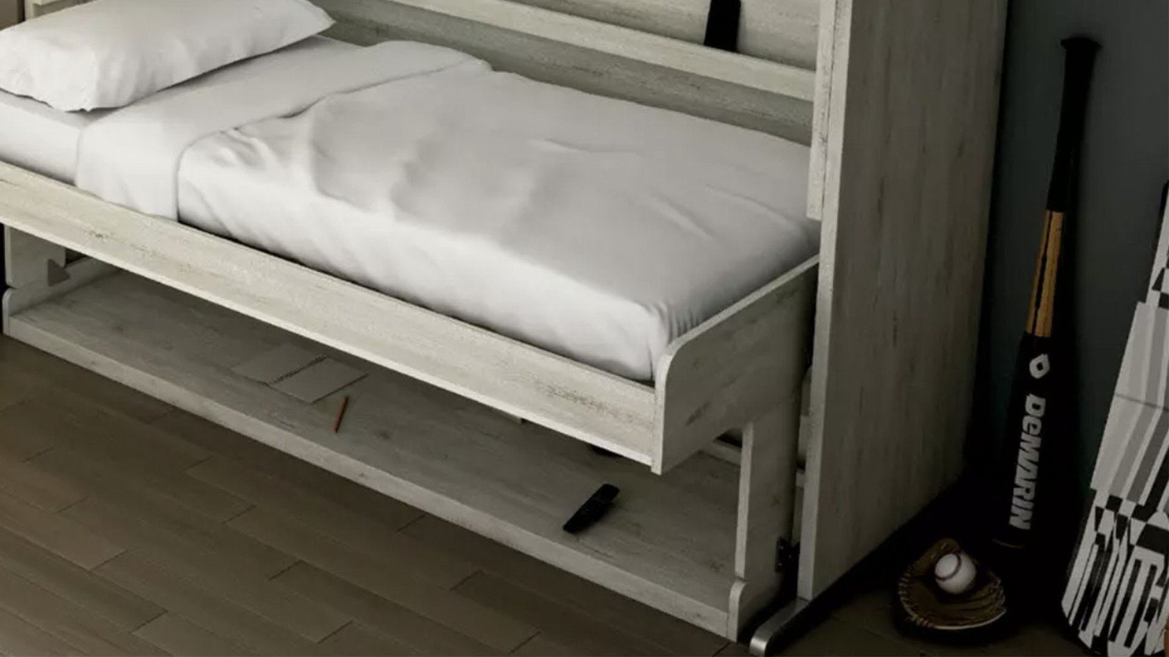 Un lit superposé horizontal escamotable autoportant très fonctionnel et polyvalent. Un seul mouvement doux pour 2 lits très confortables et tout cela dans un minimum d'espace.
