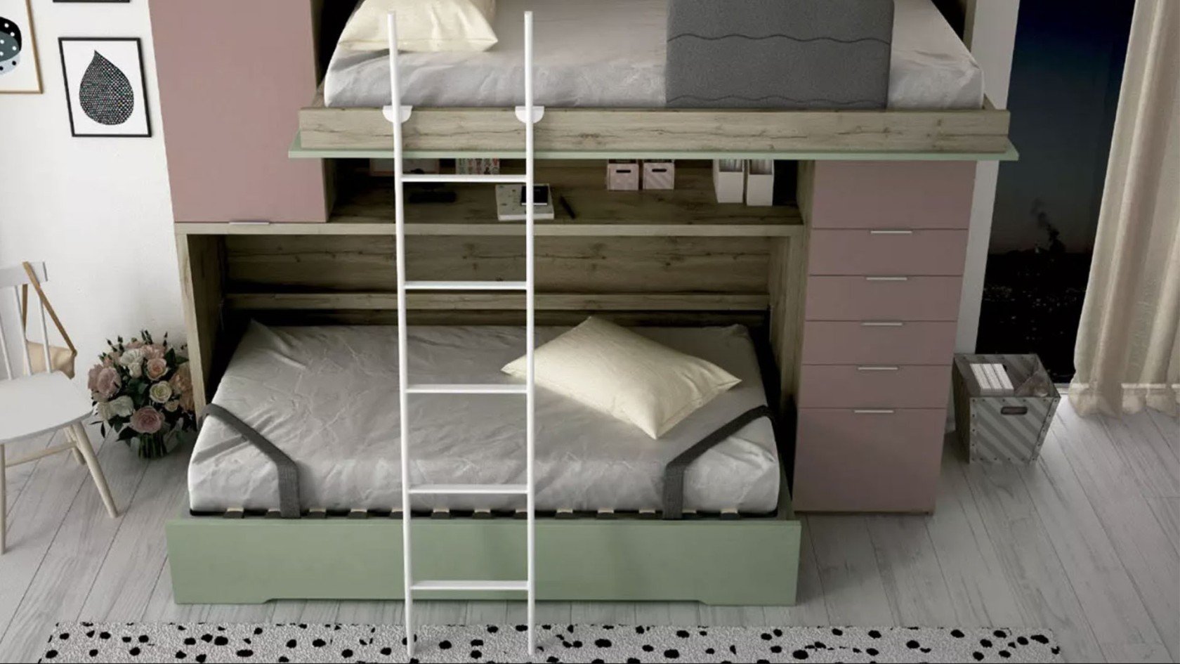 Sans aucun doute, il n'y a pas de meilleure solution pour gagner de l'espace dans la chambre à coucher et sans oublier la fiabilité et la grande sécurité que nous donne sa structure en bois de 30 mm, ainsi que ses sommiers à lattes et son échelle avec garde-corps intégré en acier d'une grande robustesse.