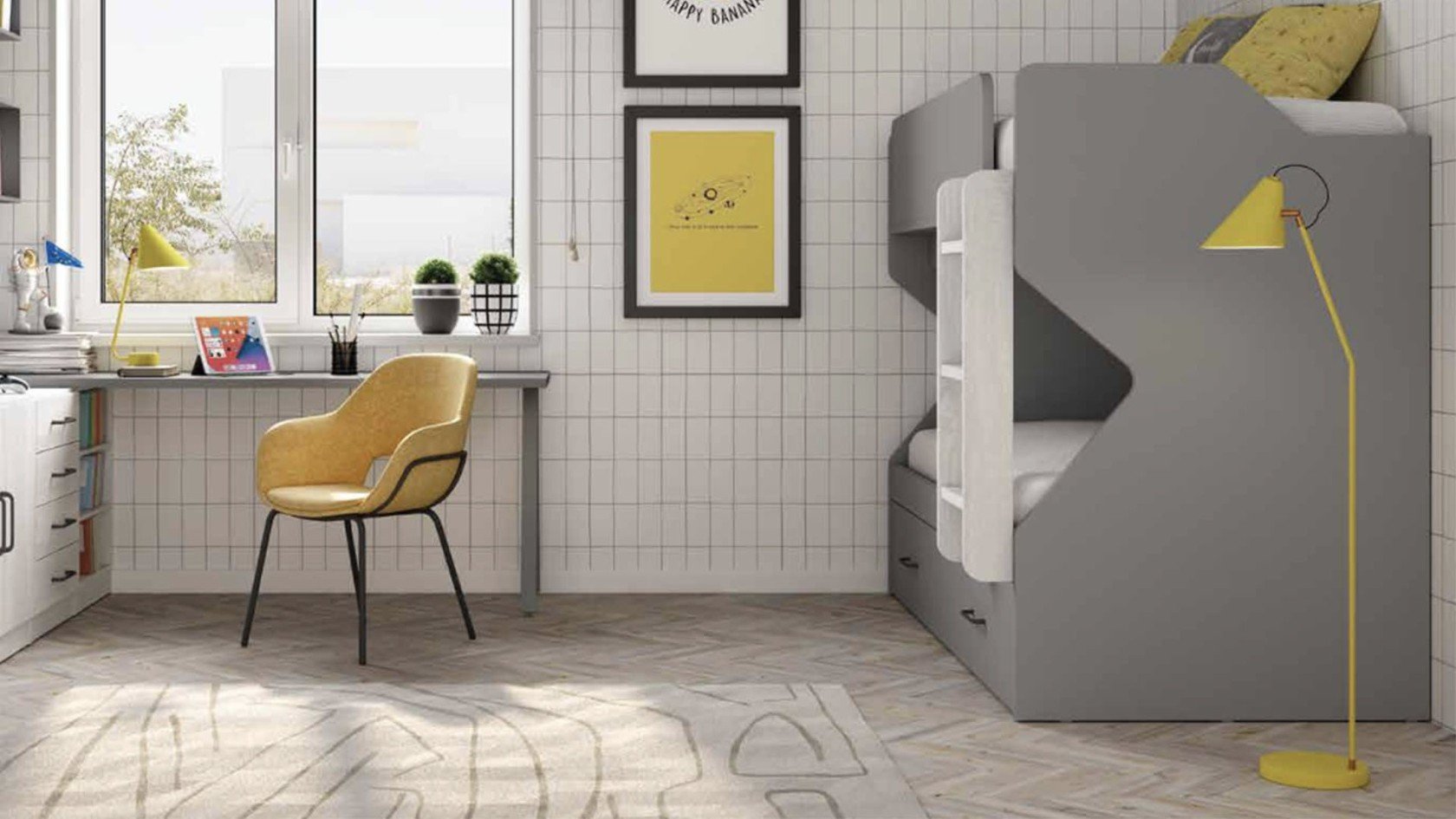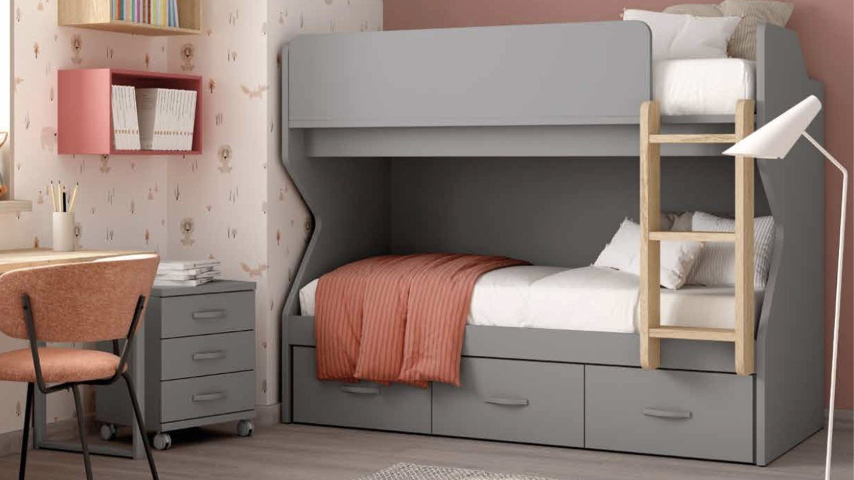 Panneaux mélaminés de première qualité, résistants aux rayures, fissures et tâches 19mm - Plaqué chêne ou peinture à l'eau sans solvant - Livré avec sommier à 12 lattes en pin massif. Épaisseurs des panneaux de 10, 19, 30, 35 et 50 mm. Panneaux 10 mm: fonds. Panneaux 19 mm: caisses et étagères de tous les meubles. Panneaux 19 mm postformés: portes et tiroirs, sauf portes courbées. Panneaux 30 mm: dessus, étagères, côtes de bureaux, plateaux de bureaux, côtés de lit compact et lits gigogne, et têtes de lit. Panneaux 30 mm postformés: les longs pans des cadres de lit, lits compact et lits gigogne. Panneaux 35 mm: côtés de blocs tiroirs intérieurs et séparations des modules pour lits compacts et lits gigogne. Panneaux 50 mm: côtés de bureaux et plateaux de bureaux. Aggloméré mélaminé et caractéristiques de qualification résistants MDF pour la classification «E1» selon la norme UNE-EN 14322 et UNE-EN 13986.