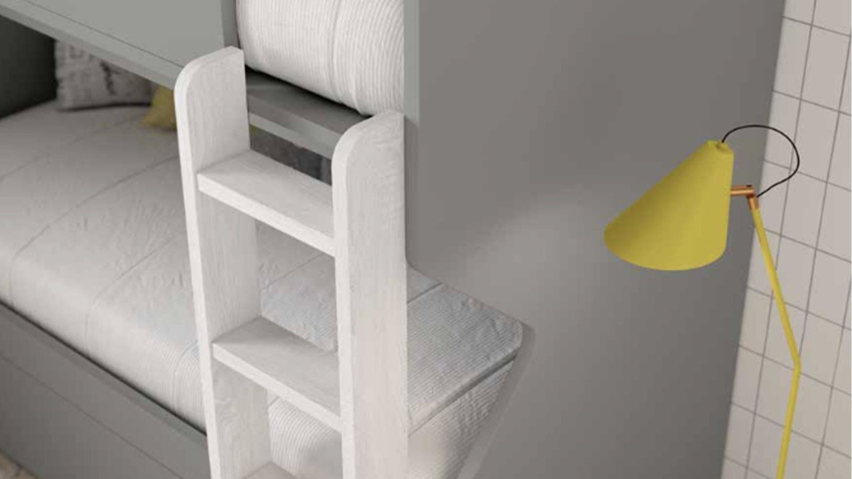 - Sécurité: Échelle avec marches larges et profondes en bois intégrée à la structure du lit